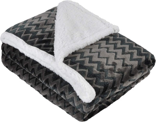 Silky Soft Sherpa Throw Blanket, Flannel Chevron Micro Plush Fleece Throws for Couch Sofa TV Bed, Reversible, Comfy, Fuzzy, 50"X60" Charcoal